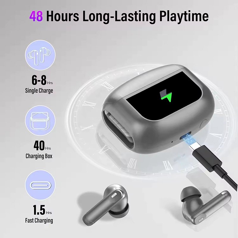 Built with IPX-5 waterproof protection, the HE076D is resistant to sweat and splashes, making it perfect for workouts or outdoor use. The digital battery display keeps you informed at all times, while touch controls allow you to manage music, calls, and volume effortlessly.