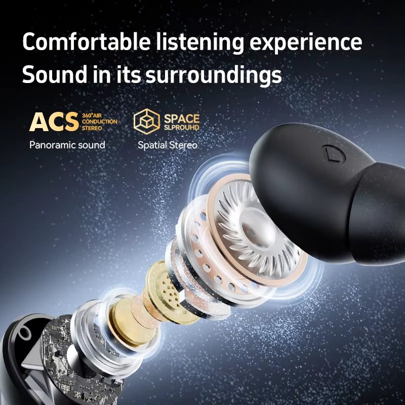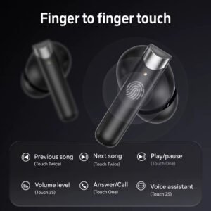 The touch control interface allows for easy management of calls, music, and volume with a simple tap. Made from lightweight and durable ABS material, the earbuds offer a snug fit and IPX-4 waterproof protection—resistant to sweat and light rain.